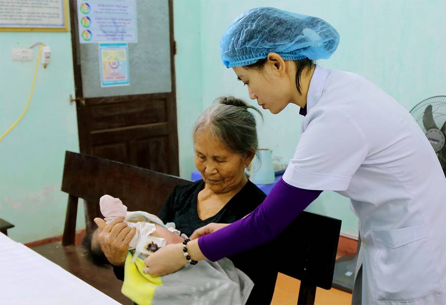 Bác sĩ kiểm tra vết thương cho bệnh nhi 4 tháng tuổi