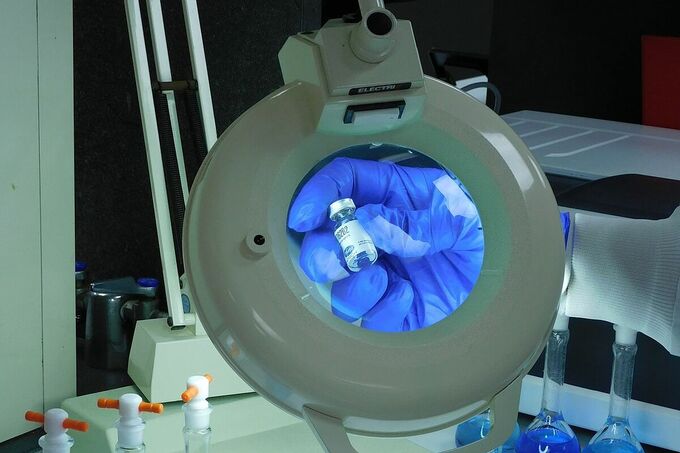 Ảnh: Chuyên viên của Pfizer phân tích một mẫu vaccine giả thu giữ ở Ba Lan