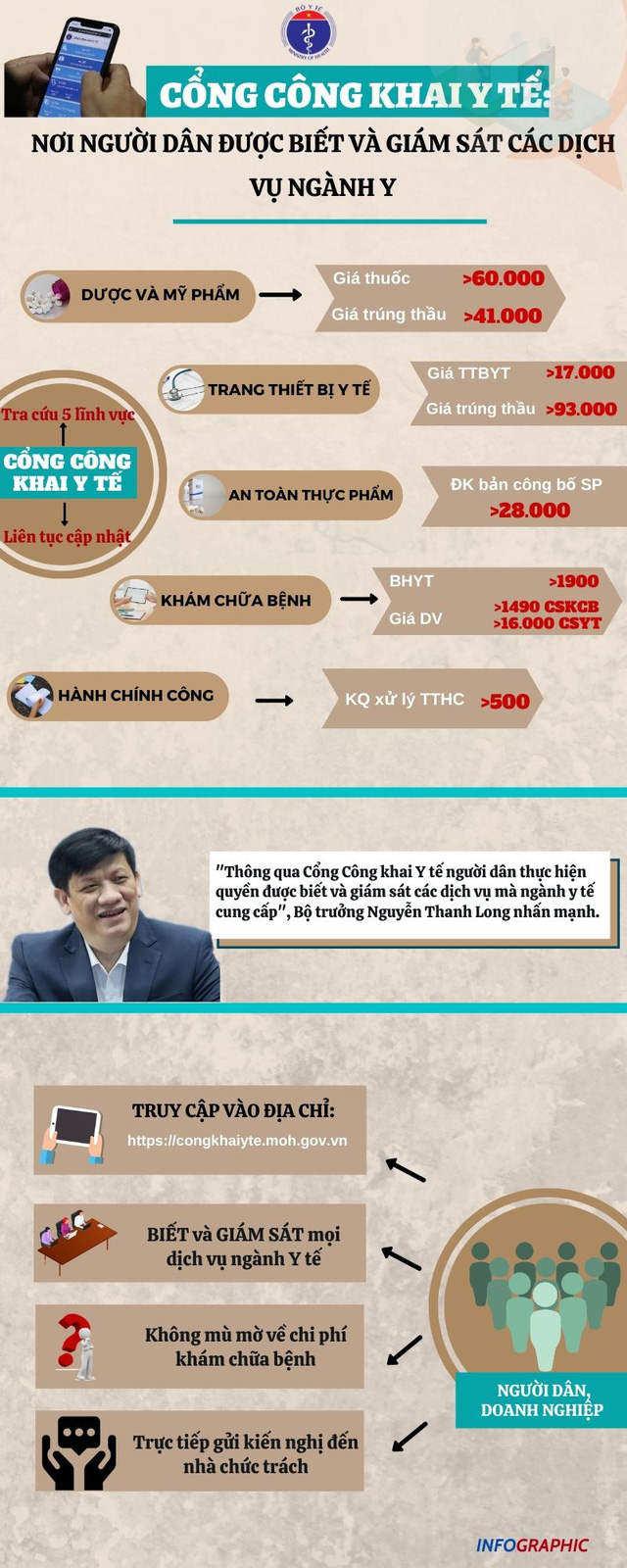 Mới đây, Bộ Y tế đã xây dựng và phát triển Cổng công khai y tế, với mục tiêu công khai, minh bạch các thông tin ngành y tế tới doanh nghiệp và người dân (vui lòng click vào đường link đính kèm)