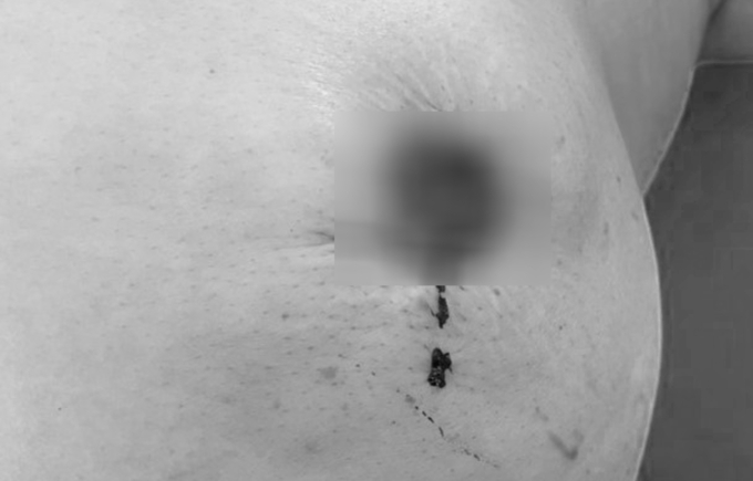 Bệnh nhân bị "rụng" núm vú do dùng thuốc nam chữa ung thư, nay phải phẫu thuật đoạn nhũ. Ảnh: Bệnh viện cung cấp