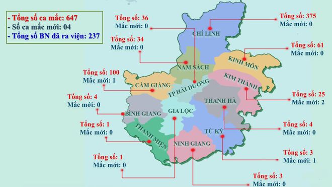 Bản đồ số ca nhiễm Covid-19 ở Hải Dương tính đến chiều 26.2