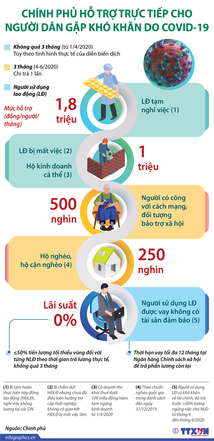 Văn phòng Chính phủ vừa có công văn số 3306/VPCP-KGVX truyền đạt ý kiến chỉ đạo của Thủ tướng Chính phủ Nguyễn Xuân Phúc về thực hiện các biện pháp hỗ trợ người dân gặp khó khăn do đại dịch COVID-19.