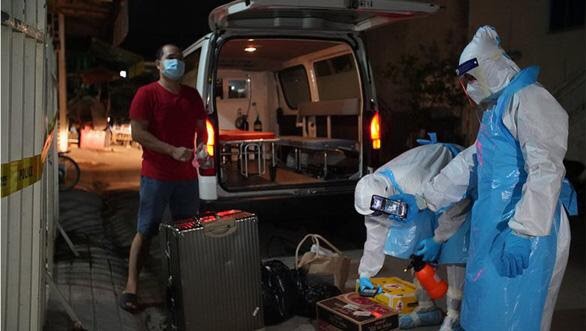 Nhân viên y tế chuyển một bệnh nhân có kết quả xét nghiệm COVID-19 dương tính ở thủ đô Phnom Penh - Ảnh: Phnom Penh Post