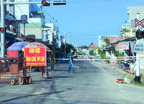Một khu vực ở thị xã Hoài Nhơn, nơi ghi nhận 3 ca dương tính nCoV được phong tỏa. Ảnh: Ngọc Hải