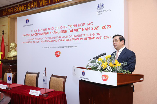 Lễ ký kết biên bản ghi nhớ Chương trình hợp tác phòng, chống kháng kháng sinh tại Việt Nam 2021 - 2023 giữa Bộ Y tế, Đại sứ quán Anh tại Việt Nam và GSK Pte Ltd tại Việt Nam vừa diễn ra trong khuôn khổ các hoạt động hưởng ứng Tuần lễ thế giới nhận thức về kháng sinh.