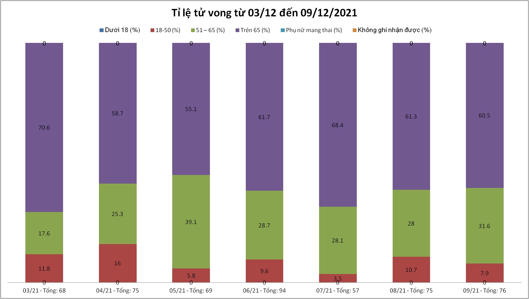 Biểu đồ tỷ lệ tử vong theo nhóm tuổi từ ngày 03-9/12/2021