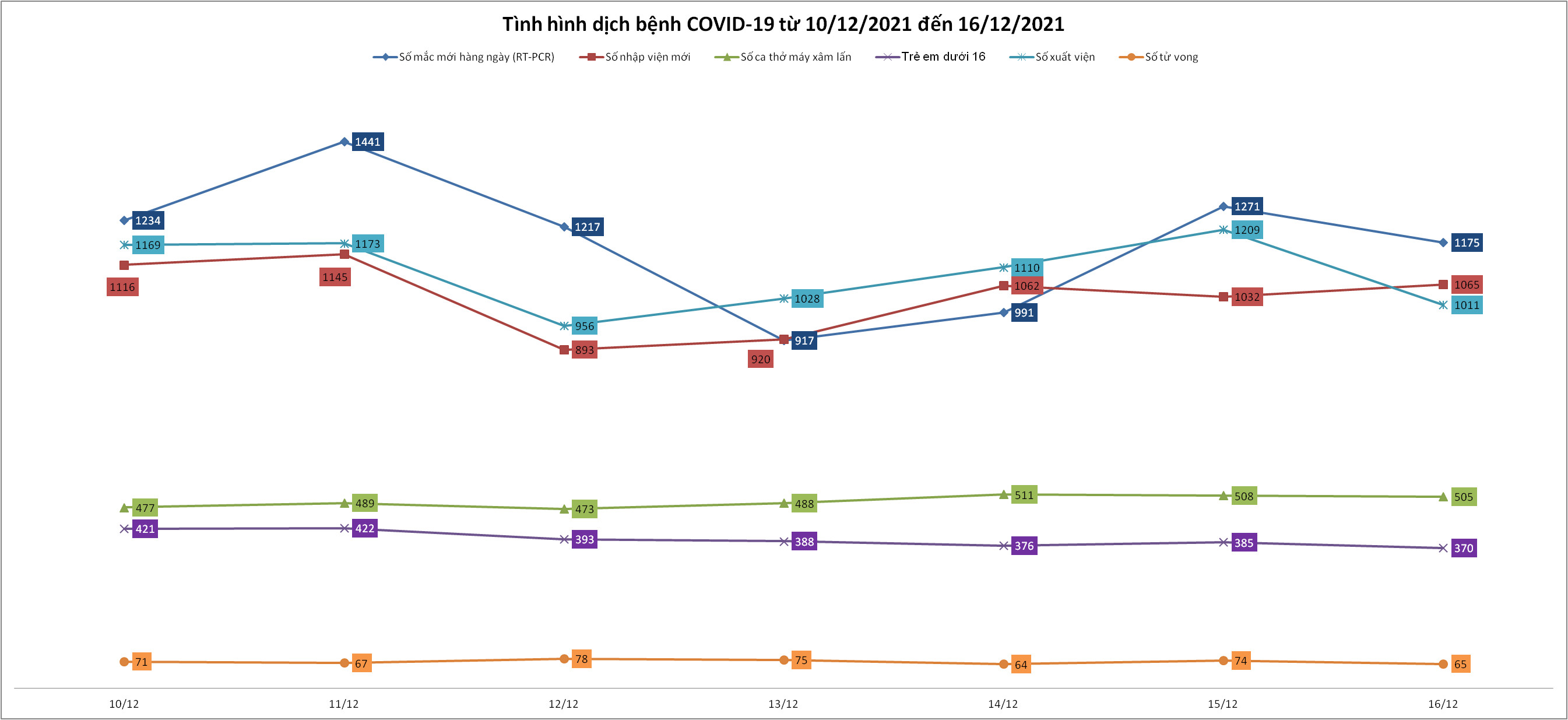 Biểu đồ tình hình dịch bệnh từ ngày 10-16/12/2021