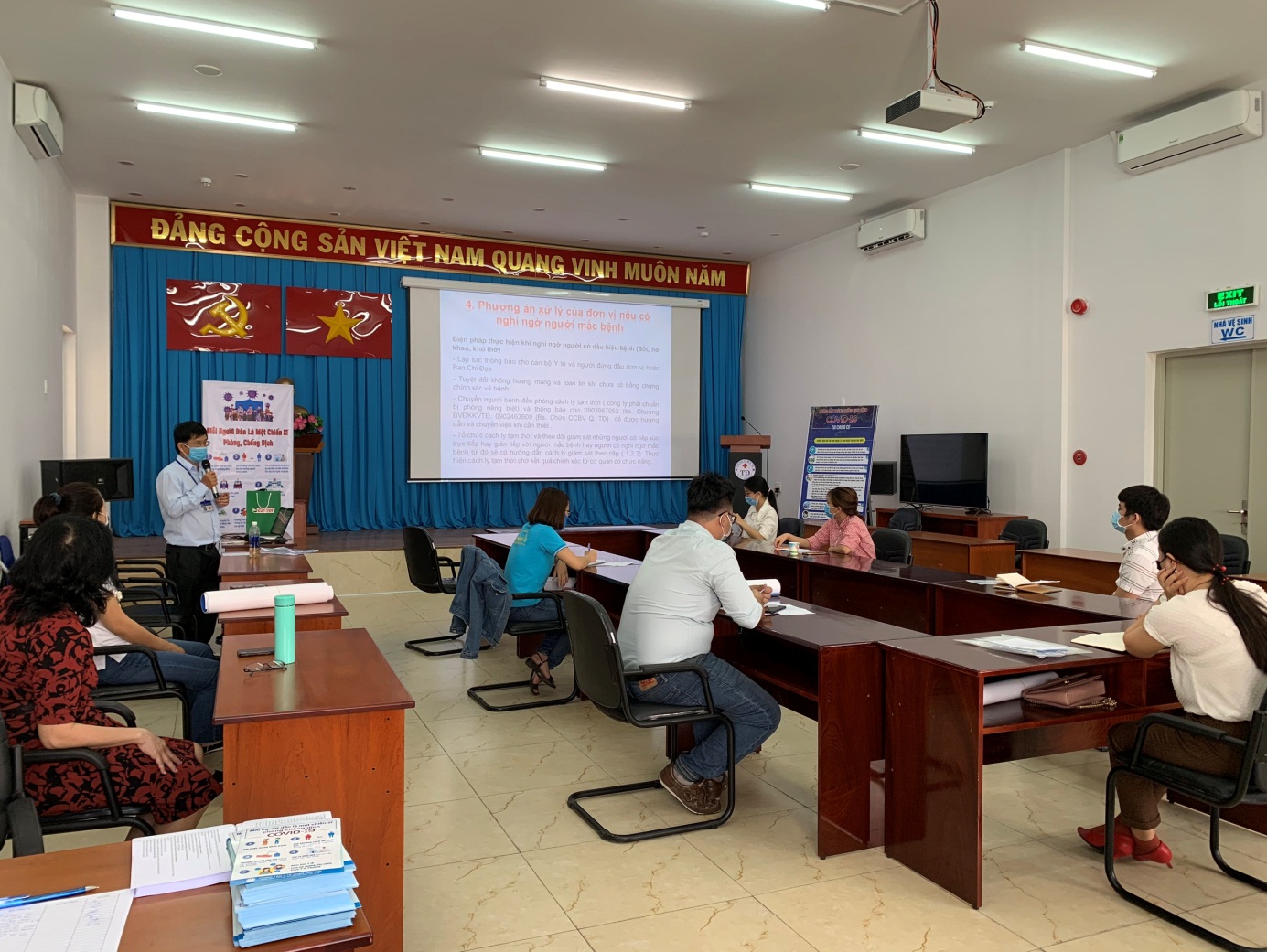 Ngày 22/4/2020, Trung tâm Y tế quận Thủ Đức đã tổ chức các buổi tập huấn cho các nhân viên phụ trách y tế của các doanh nghiệp về phòng chống dịch bệnh Covid-19. Đây là lực lượng quan trọng trong công tác thực hiện các hoạt động phòng chống dịch bệnh tại các doanh nghiệp, góp phần làm giảm rủi ro lây nhiễm dịch bệnh, xây dựng môi trường làm việc an toàn cho người lao động. Buổi tập huấn chỉ có 10 người tham dự và thực hiện 5 lớp một ngày, trong hai ngày 22 và 23/4/2020.