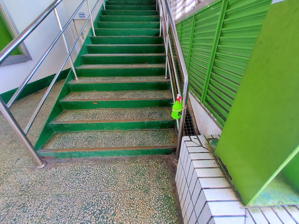 Đặt các bình sát khuẩn tay nhanh tại hành lang cầu thang