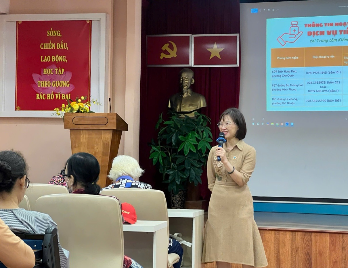 Phát biểu tại buổi sinh hoạt, ThS.BS Lê Hồng Nga – Phó Giám đốc HCDC – nhấn mạnh: “Tiêm chủng là biện pháp hiệu quả nhất để bảo vệ người cao tuổi trước các bệnh truyền nhiễm có thể phòng ngừa. Người dân, đặc biệt là người cao tuổi và người có bệnh nền, cần chủ động thực hiện lịch tiêm định kỳ theo hướng dẫn của cán bộ y tế để giảm nguy cơ mắc bệnh và tử vong.
