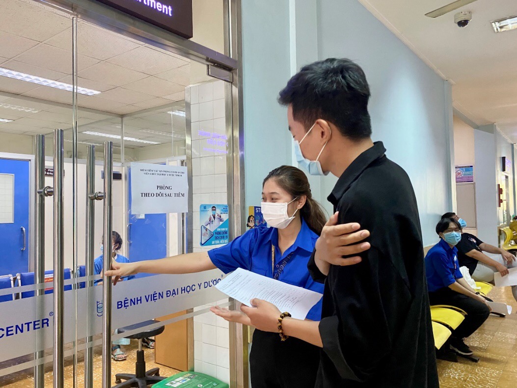 Vừa qua, Trung tâm Kiểm soát Bệnh tật TP.HCM (HCDC) phối hợp với Bệnh viện Đại học Y Dược TP.HCM - Cơ sở 1 đã tổ chức tiêm vắc-xin phòng COVID-19 cho toàn thể đội sinh viên của trường đang tham gia hỗ trợ phòng chống dịch.