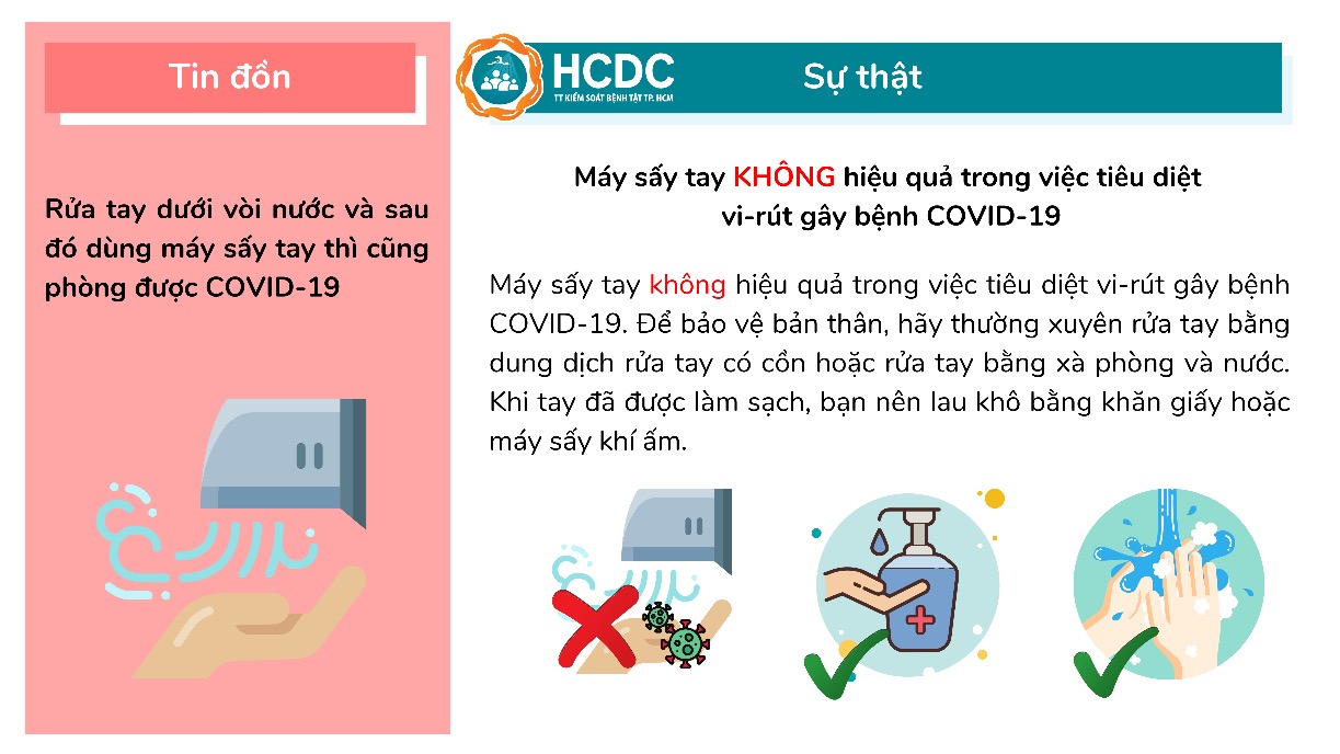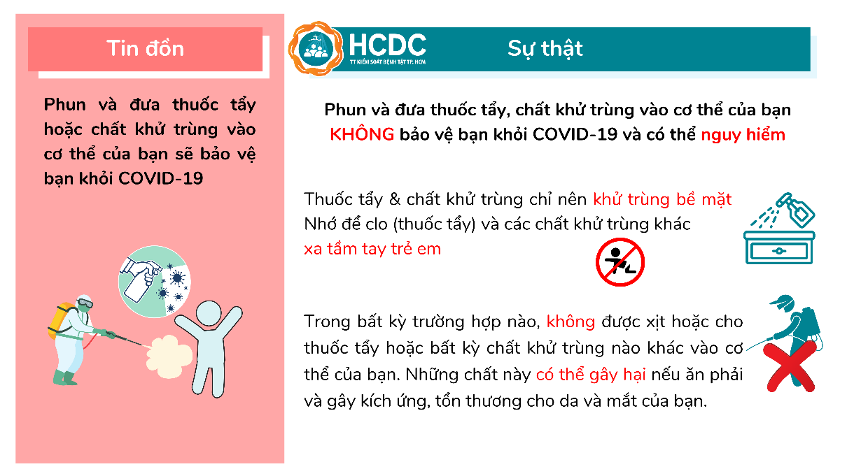 Hãy cùng HCDC tìm hiểu những tin đồn và sự thật về dịch COVID-19 và chia sẻ rộng rãi để mọi người cùng biết nhé!Dịch bệnh sẽ được kiểm soát và ngăn chặn nếu có sự đồng lòng, quyết tâm của mọi tầng lớp nhân dân và cả hệ thống chính trị.