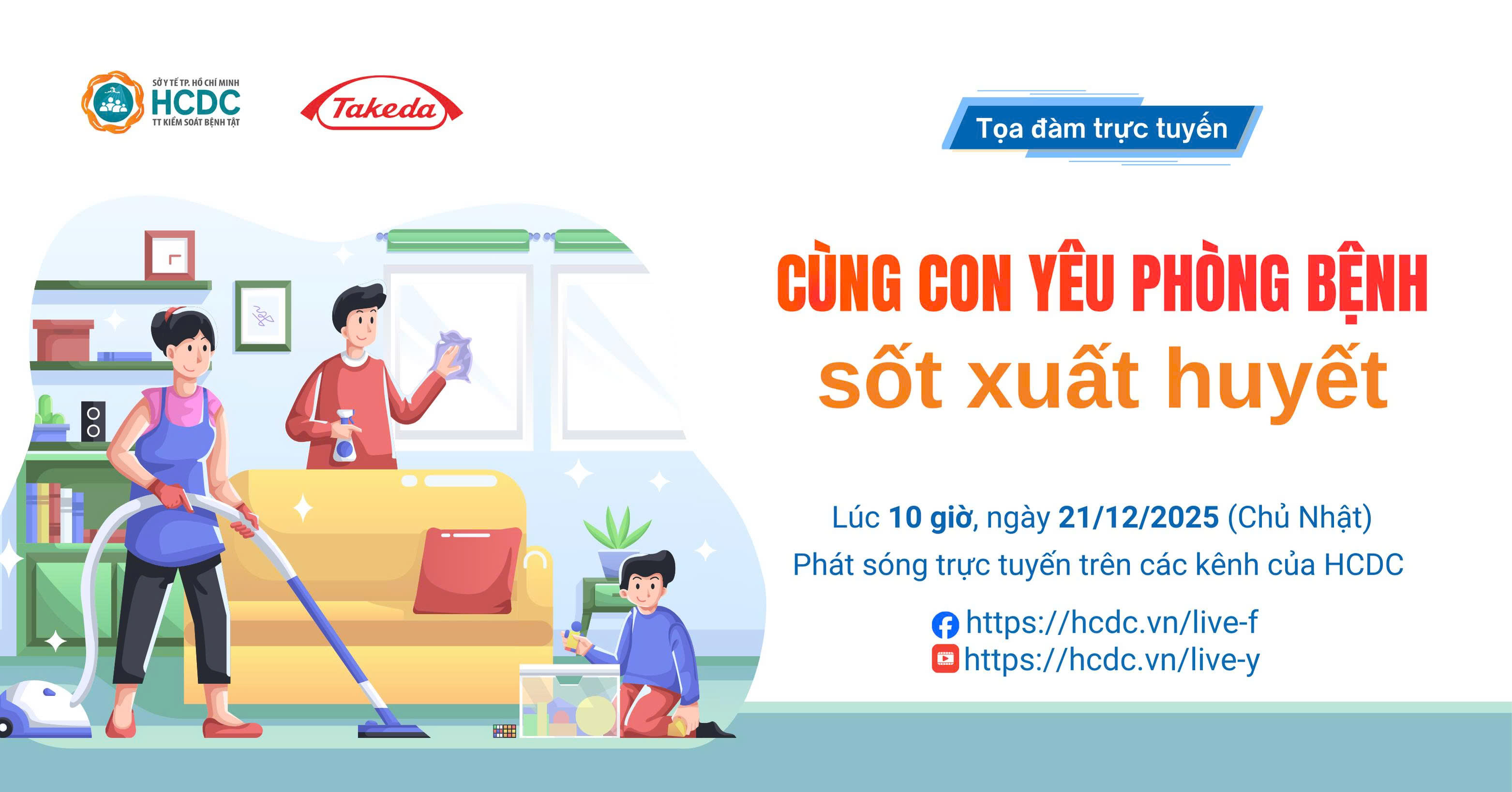 Tọa đàm sẽ được phát sóng lúc 10 giờ, ngày 21/12/2025, trên kênh Fanpage và Youtube của Trung tâm Kiểm soát bệnh tật Thành phố Hồ Chí Minh. Đây là cơ hội quan trọng để phụ huynh trang bị thêm kiến thức, tự tin hơn trong việc theo dõi sức khỏe cho con và chủ động phòng ngừa bệnh sốt xuất huyết ngay từ trong gia đình.