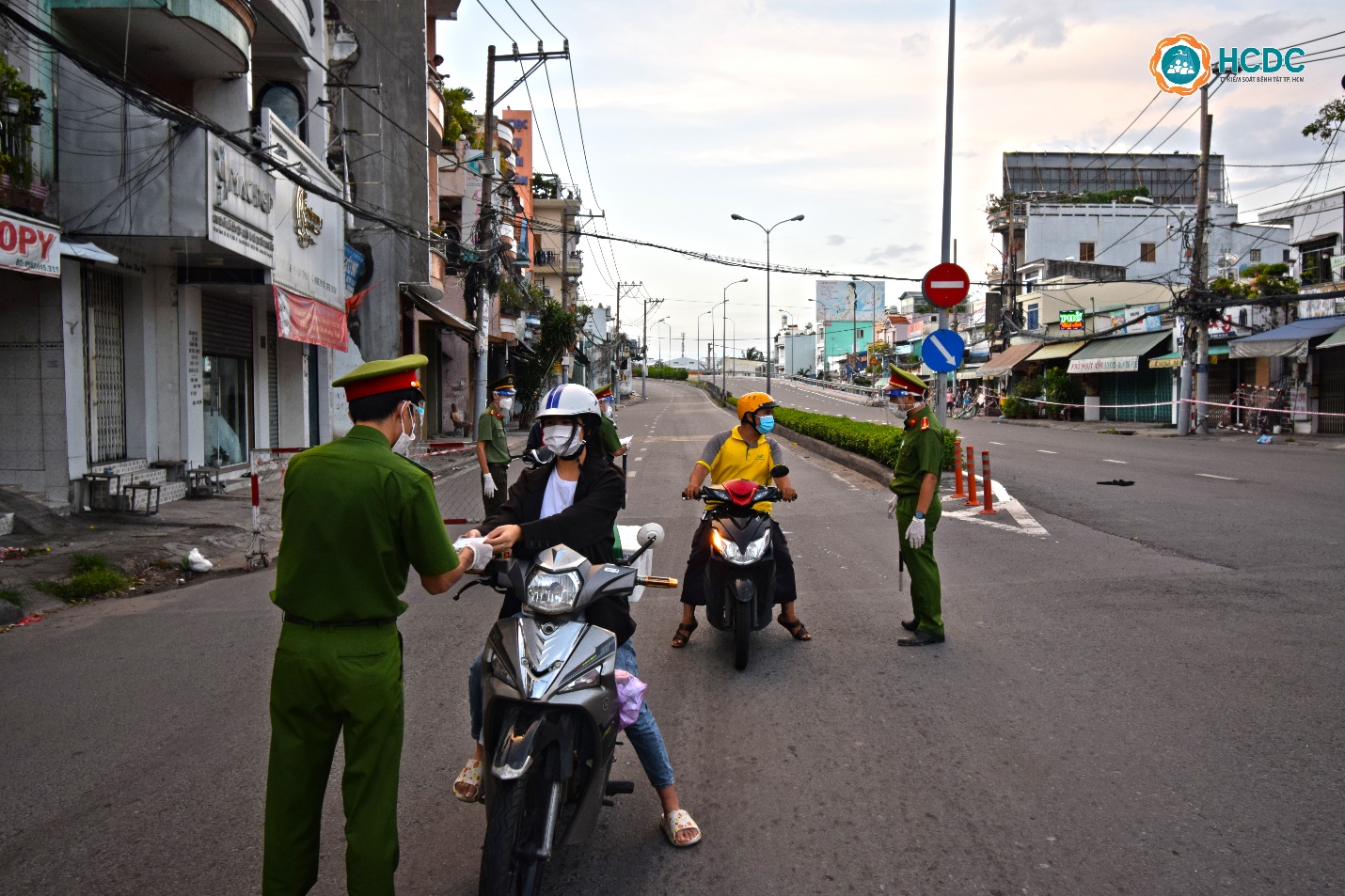 Trên đường Phạm Thế Hiển (Quận 8) lực lượng chức năng nhắc nhở người dân không ra đường sau 18 giờ
