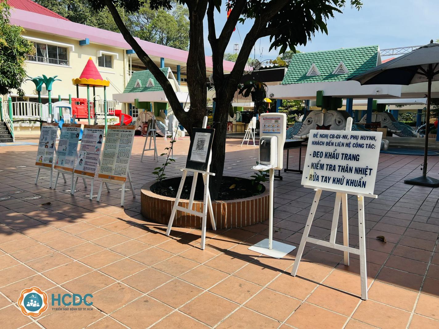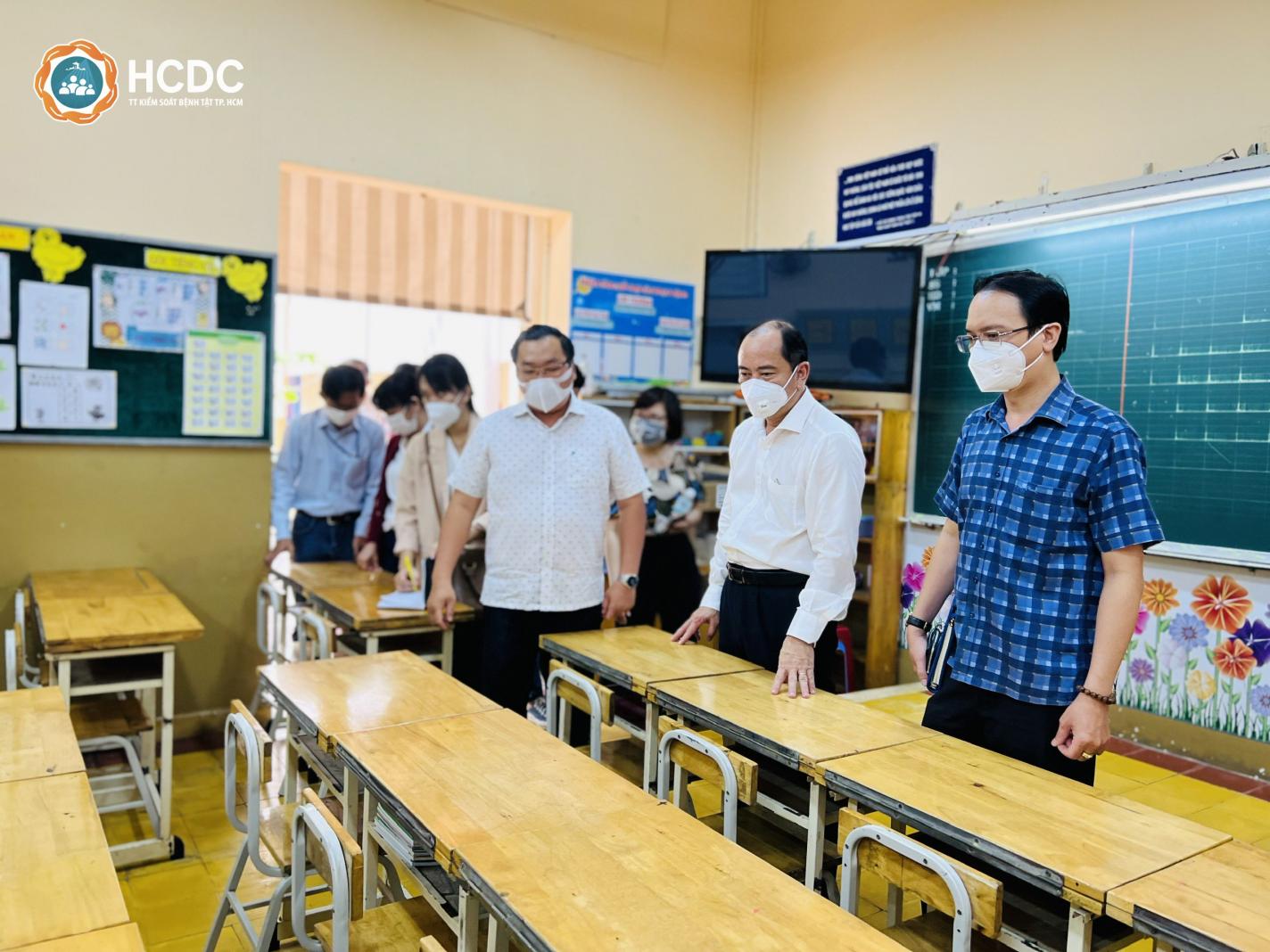 Trên địa bàn quận 1, đoàn kiểm tra đã đến thăm 1 trường tiểu học và 1 trường mầm non. Qua quá trình kiểm tra, các trường trên địa bàn đều đã lên phương án an toàn phòng chống dịch, tuân thủ nghiêm hướng dẫn phòng chống dịch trong nhà trường của Bộ Y tế và Sở Y tế ban hành. Bên cạnh đó, BS.CK2. Nguyễn Hữu Hưng – Phó Giám đốc Sở Y tế TP. HCM cũng khuyến cáo nhà trường cần tận dụng tối đa ánh sáng và thông khí tự nhiên để đảm bảo tăng luồng không khí sạch từ ngoài vào. Nhà trường cần đẩy mạnh tuyên truyền các biện pháp phòng dịch, xử trí kịp thời khi phát hiện ca nhiễm hoặc nghi nhiễm đến giáo viên, công nhân viên trong trường và cho phụ huynh học sinh. Các số điện thoại khi cần báo tin cần được dán ở những nơi dễ thấy.