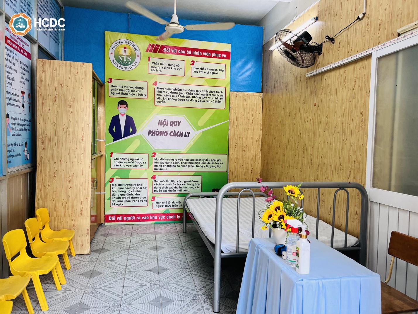 Khu vực cách ly tạm thời khi phát hiện ca nghi nhiễm tại trường tiểu học Nguyễn Thái Học (Q1)