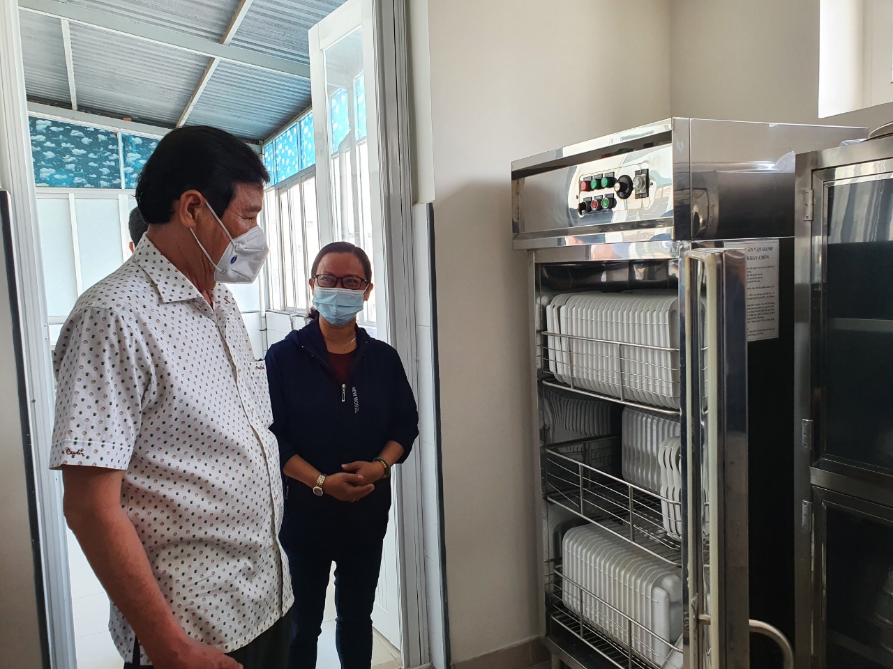 Bs Nguyễn Hữu Hưng Phó giám đốc Sở Y tế TP.HCM kiểm tra khu vực bếp nấu tại trường mầm non Tân Định ( Q1)