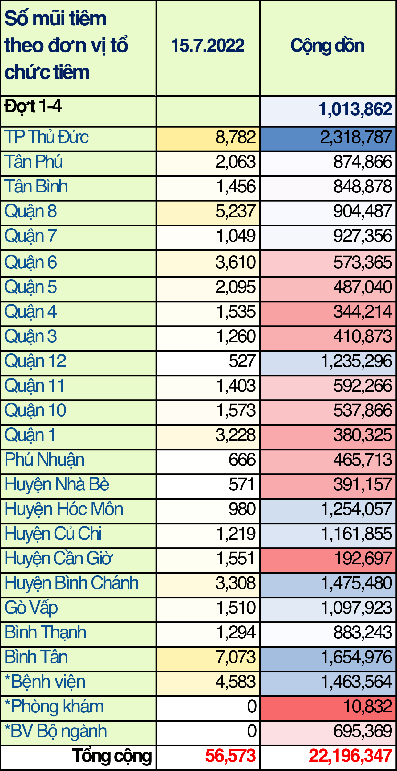 TP. Hồ Chí Minh: Cập nhật số liệu tiêm chủng vắc xin phòng chống COVID-19 ngày 15/7/2022