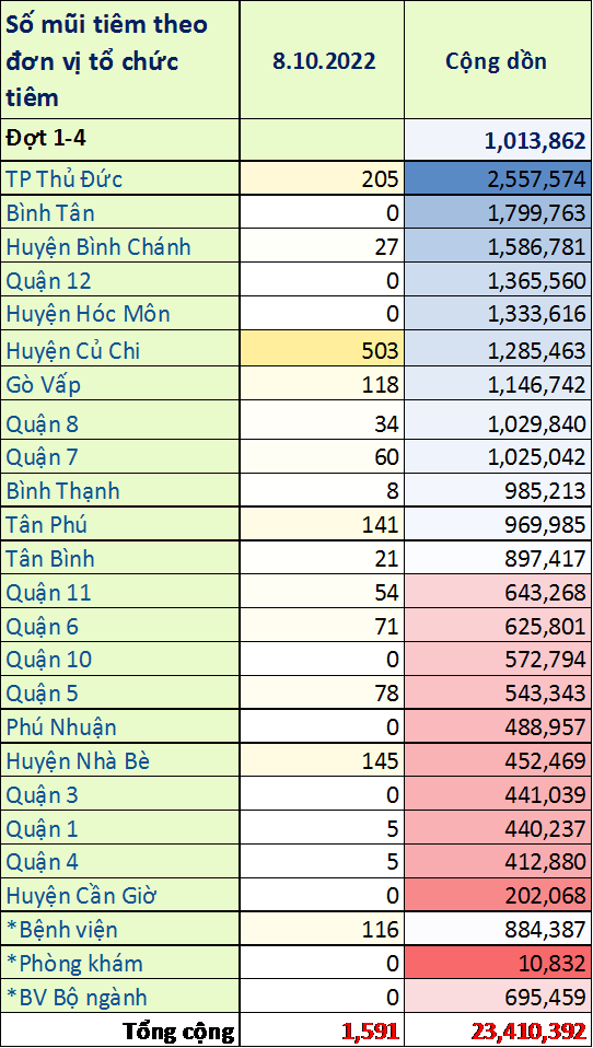 TP. Hồ Chí Minh: Cập nhật số liệu tiêm chủng vắc xin phòng chống COVID-19 ngày 8/10/2022