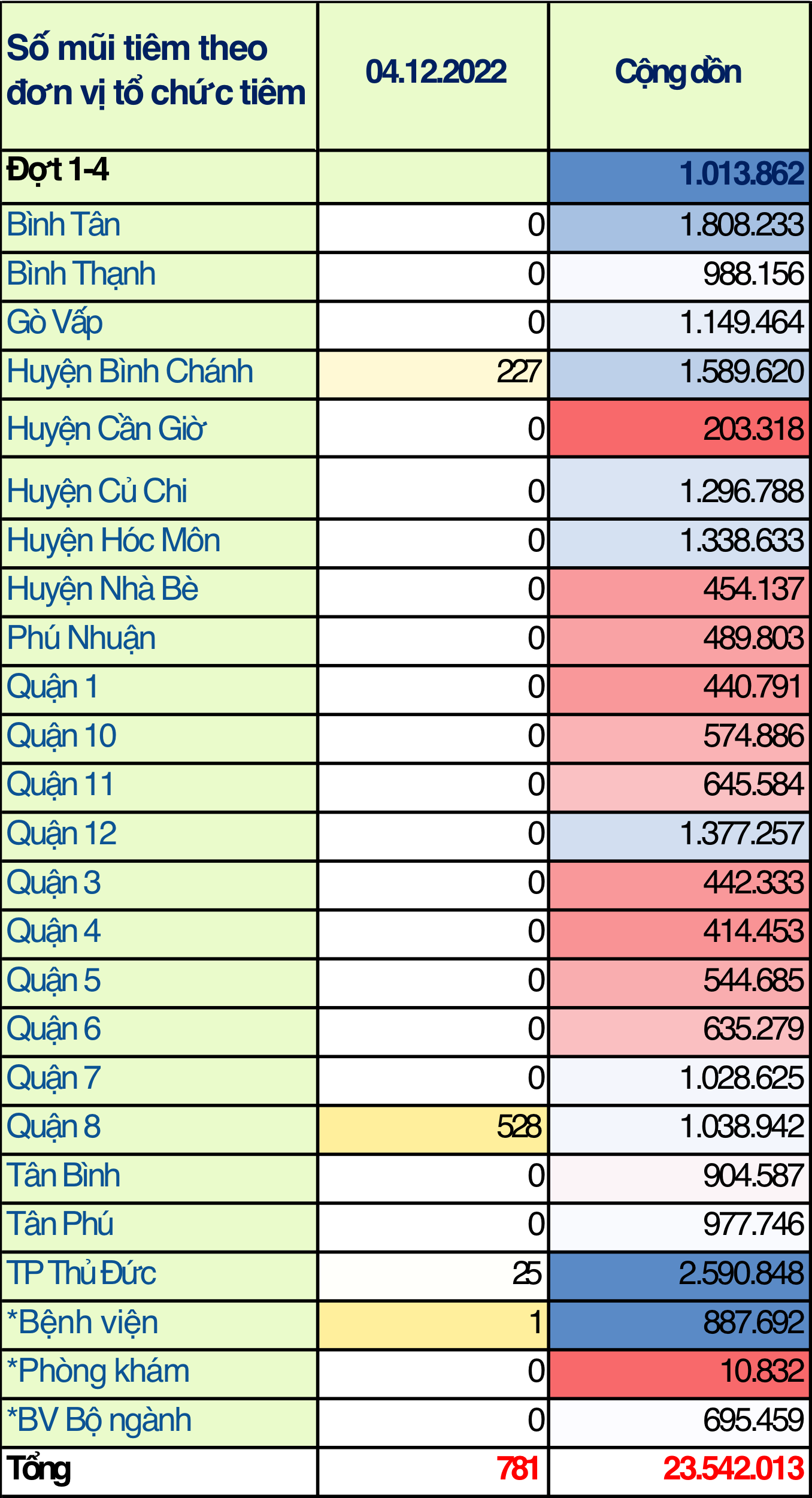 TP. Hồ Chí Minh: Cập nhật số liệu tiêm chủng vắc-xin phòng chống COVID-19 ngày 04/12/2022