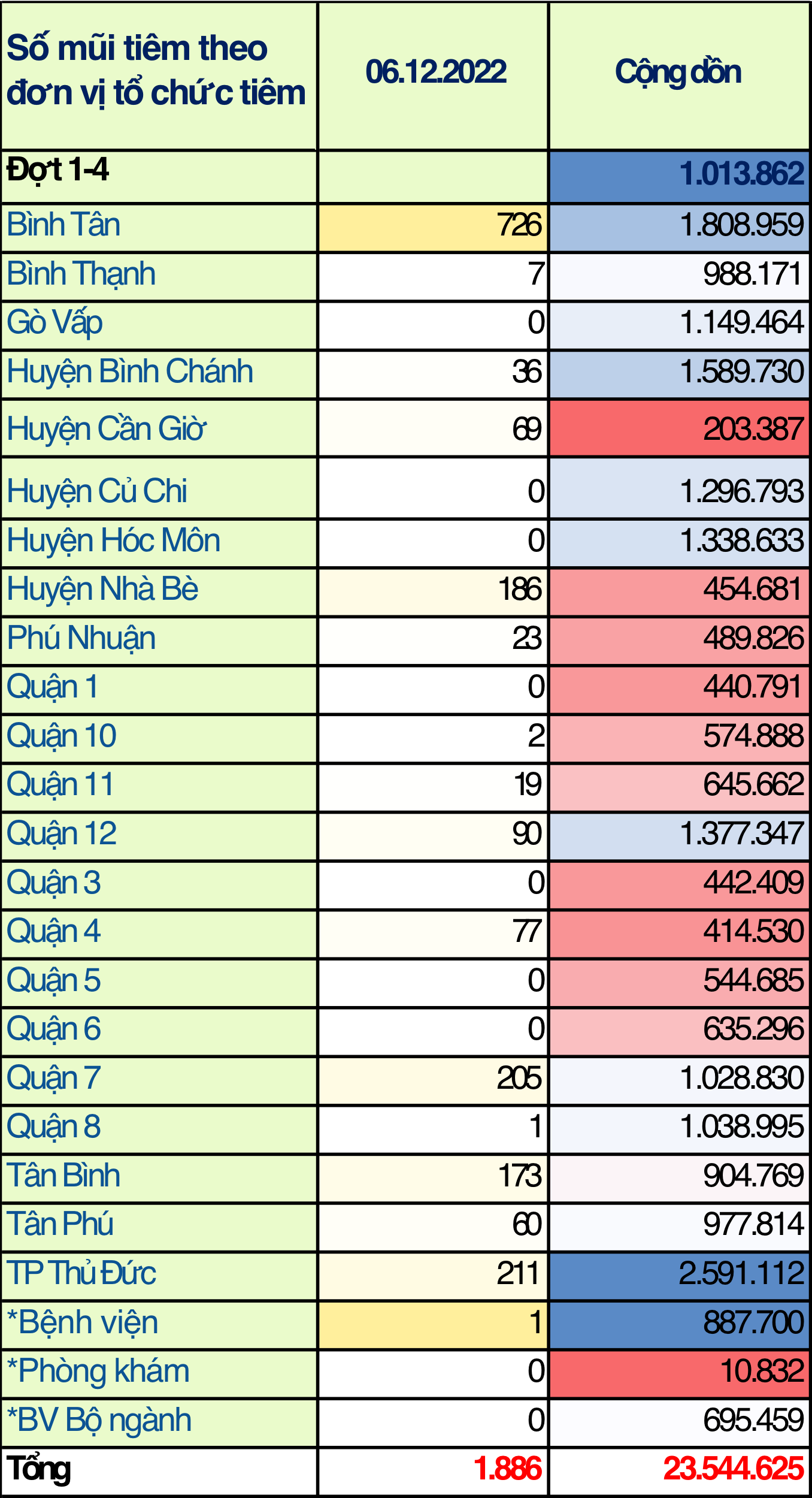 TP. Hồ Chí Minh: Cập nhật số liệu tiêm chủng vắc-xin phòng chống COVID-19 ngày 06/12/2022
