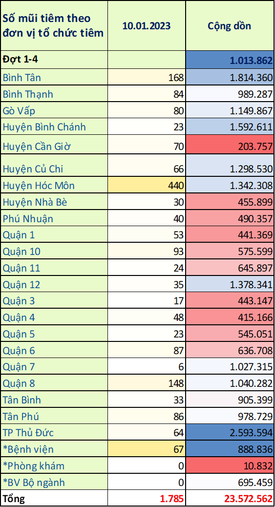 TP. Hồ Chí Minh: Cập nhật số liệu tiêm chủng vắc-xin phòng chống COVID-19 ngày 10/01/2023