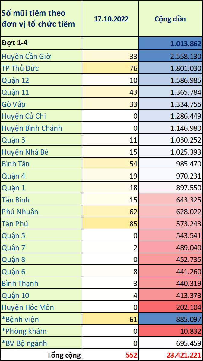 TP. Hồ Chí Minh: Cập nhật số liệu tiêm chủng vắc-xin phòng chống COVID-19 ngày 17/10/2022