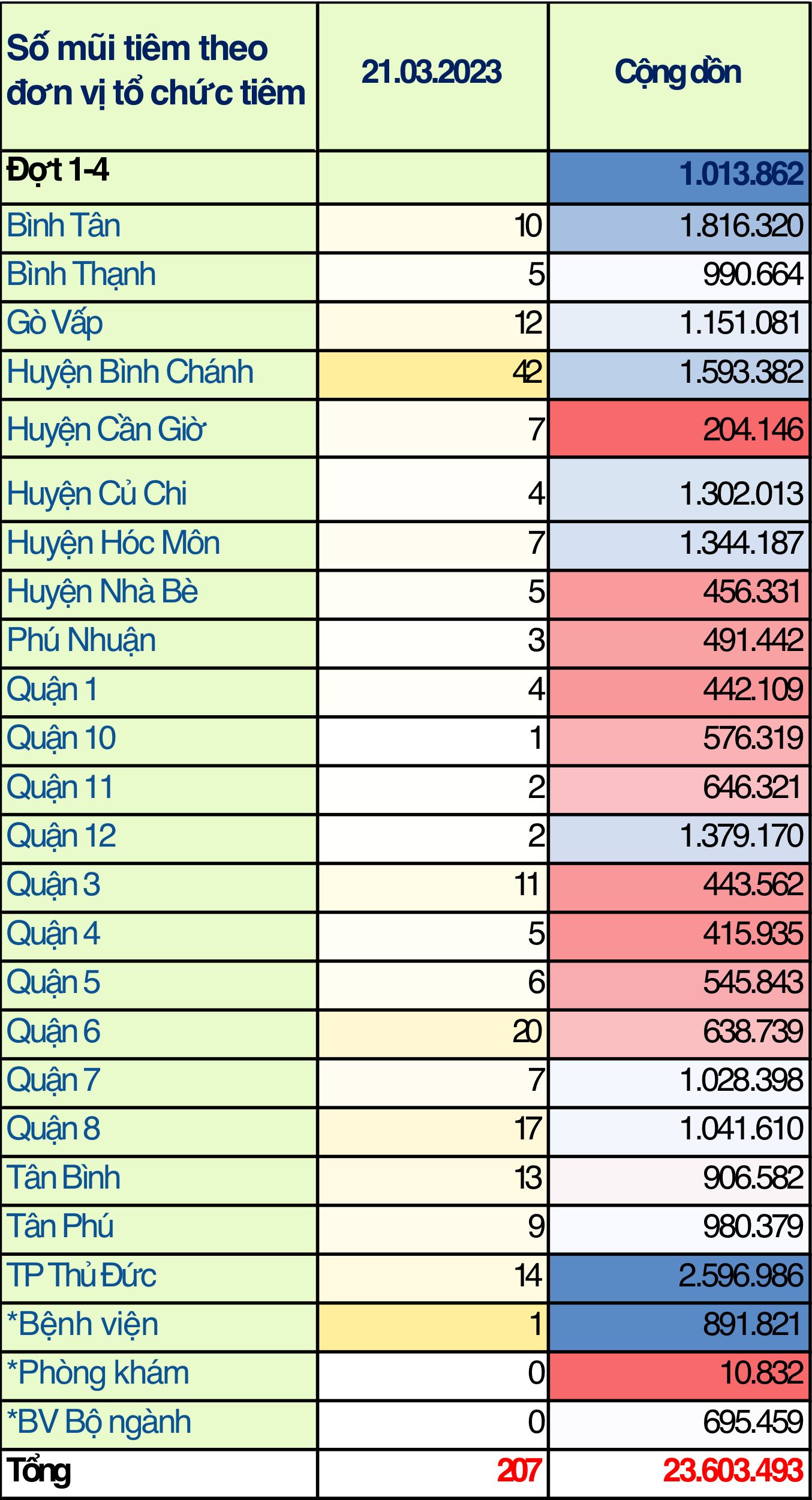 TP. Hồ Chí Minh: Cập nhật số liệu tiêm chủng vắc-xin phòng chống COVID-19 ngày 21/03/2023