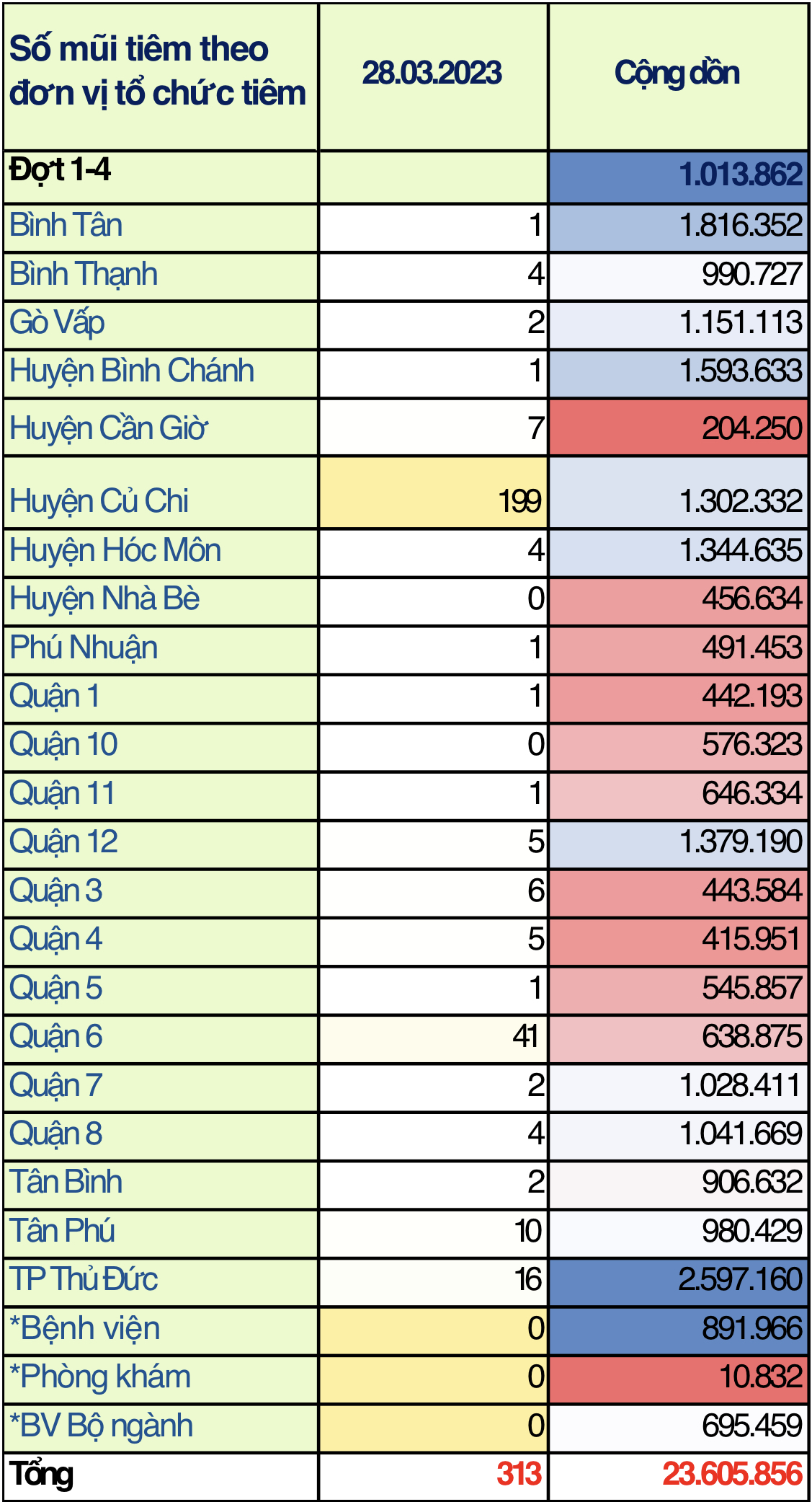 TP. Hồ Chí Minh: Cập nhật số liệu tiêm chủng vắc-xin phòng chống COVID-19 ngày 28/03/2023