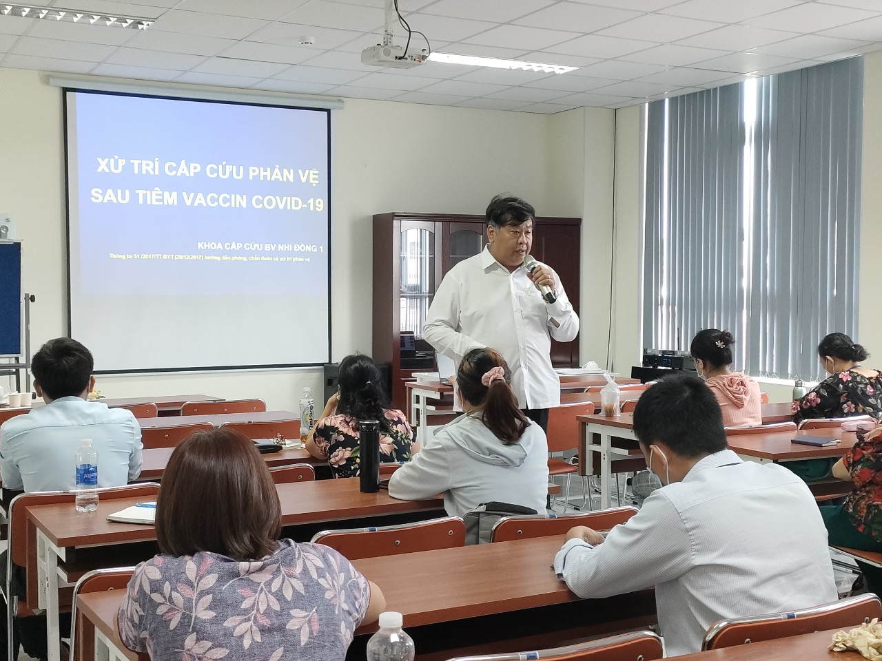 Ảnh: BS. Đinh Tấn Phương – BV Nhi đồng 1 đang tập huấn xử trí cấp cứu phản vệ sau tiêm vắc xin