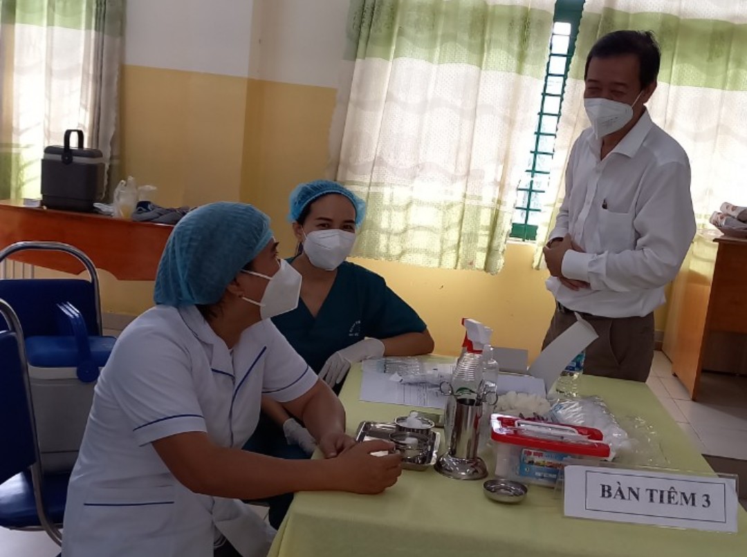 Ảnh: TS.BS Nguyễn Anh Dũng, Phó Giám đốc Sở Y tế TP.HCM đến giám sát và chỉ đạo trực tiếp điểm tiêm trường THCS Bình Chánh