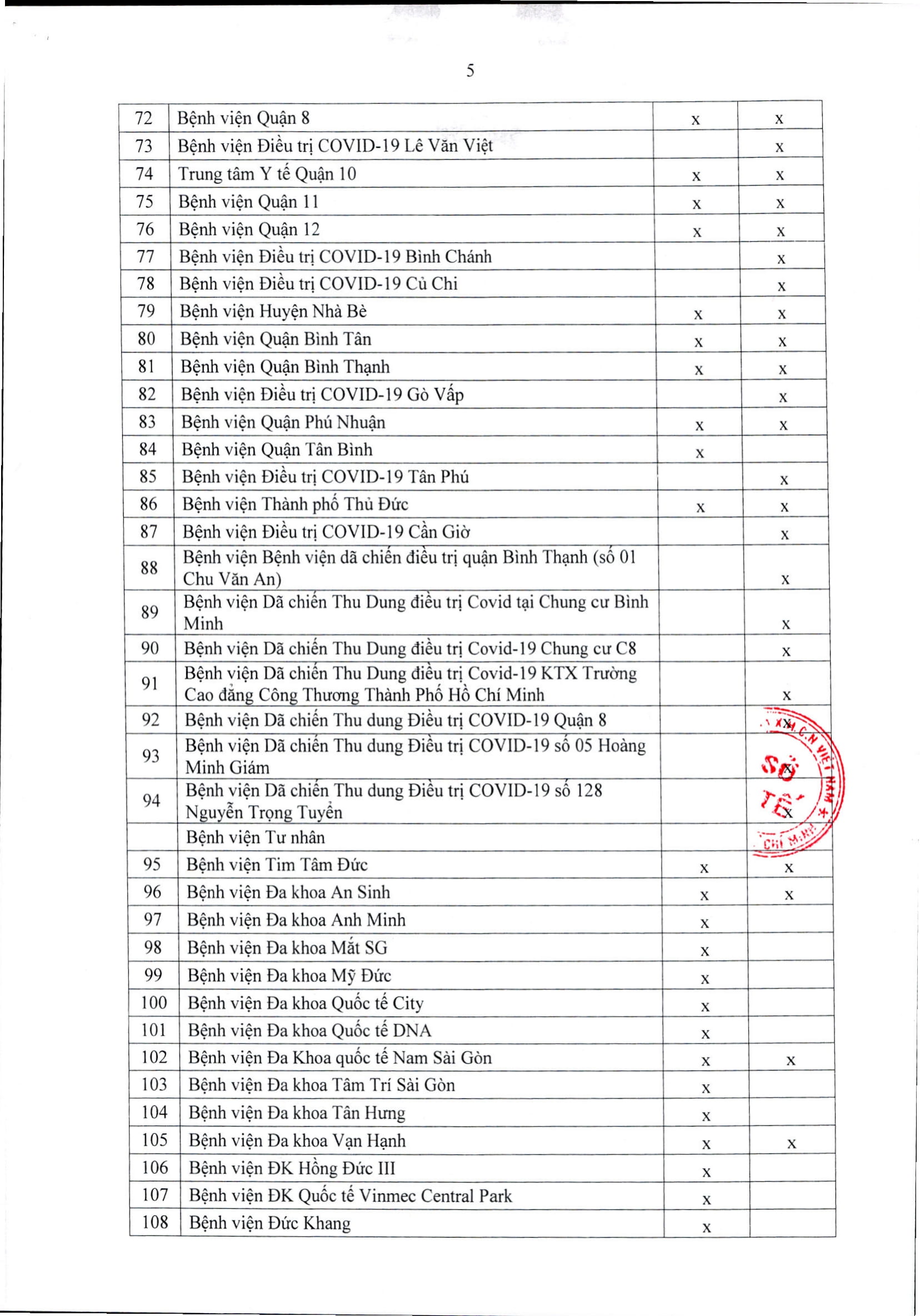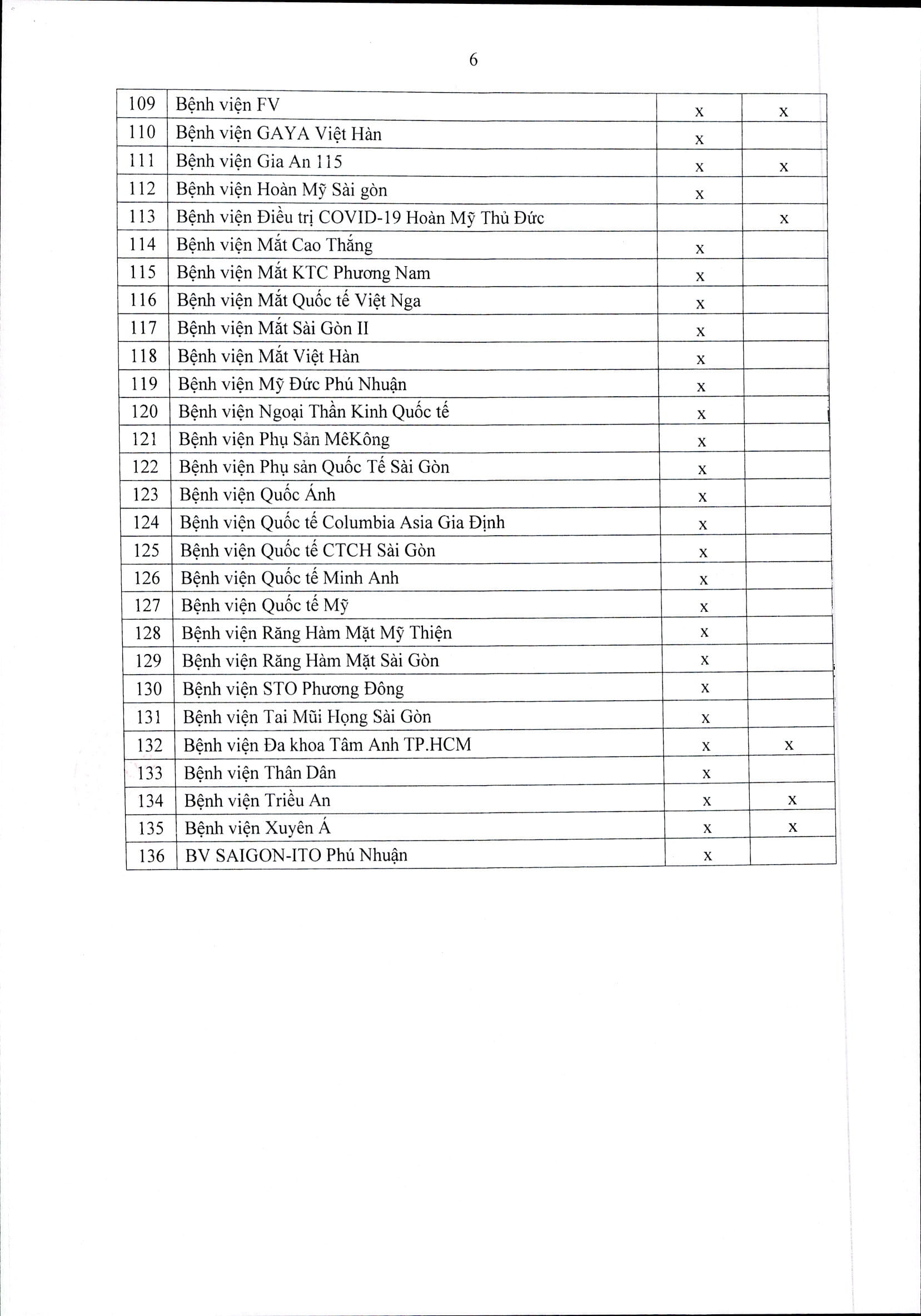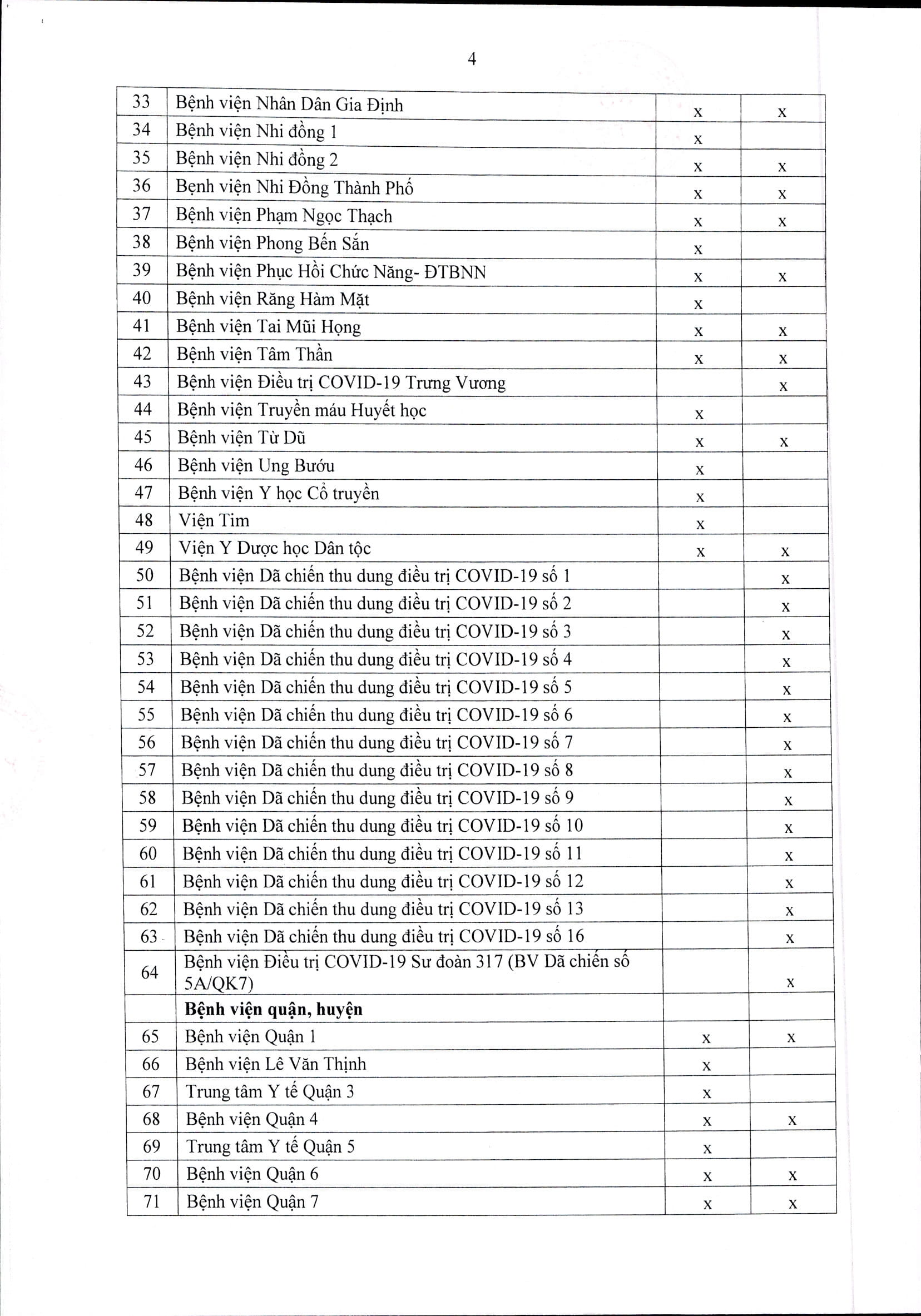 Danh sách các bệnh viện tiếp nhận người mắc COVID-19 và không mắc COVID-19: