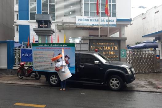 Xe loa truyền thông của Trung tâm Y tế quận 3 chạy khắp các tuyến đường