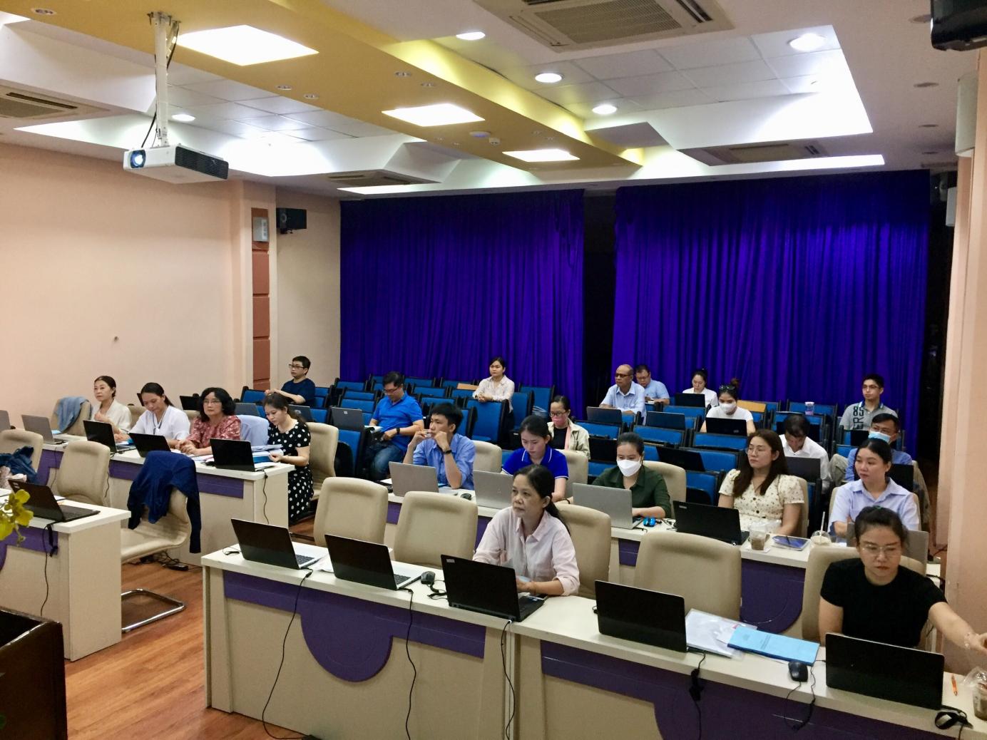 Ảnh: Học viên tham gia lớp tập huấn hướng dẫn ghi nhận thông tin và báo cáo dữ liệu các bệnh lây truyền qua đường tình dục