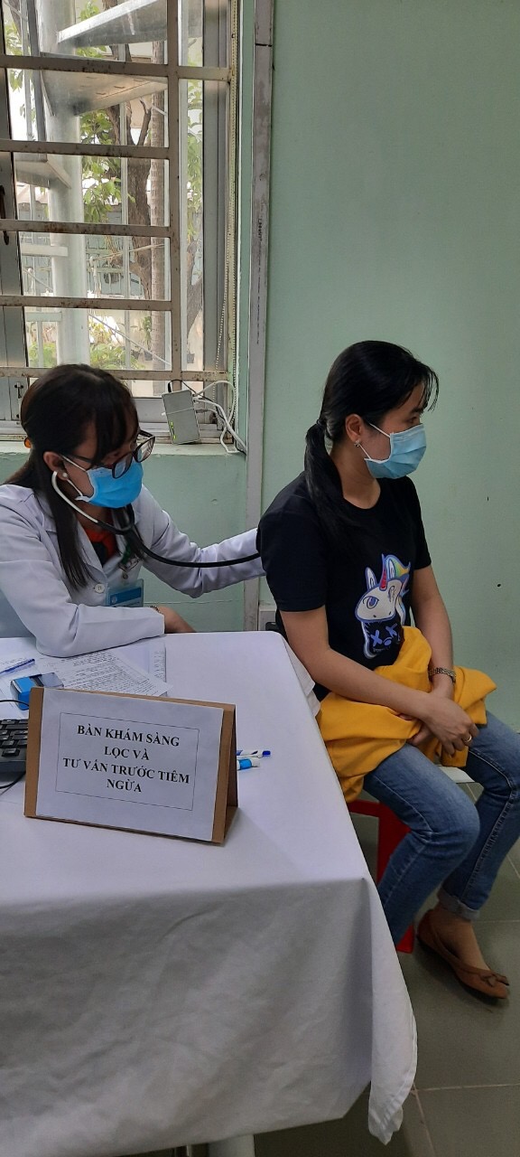 Ảnh: khám sàng lọc trước khi tiêm chủng (nguồn: Trung tâm Y tế Bình Tân)