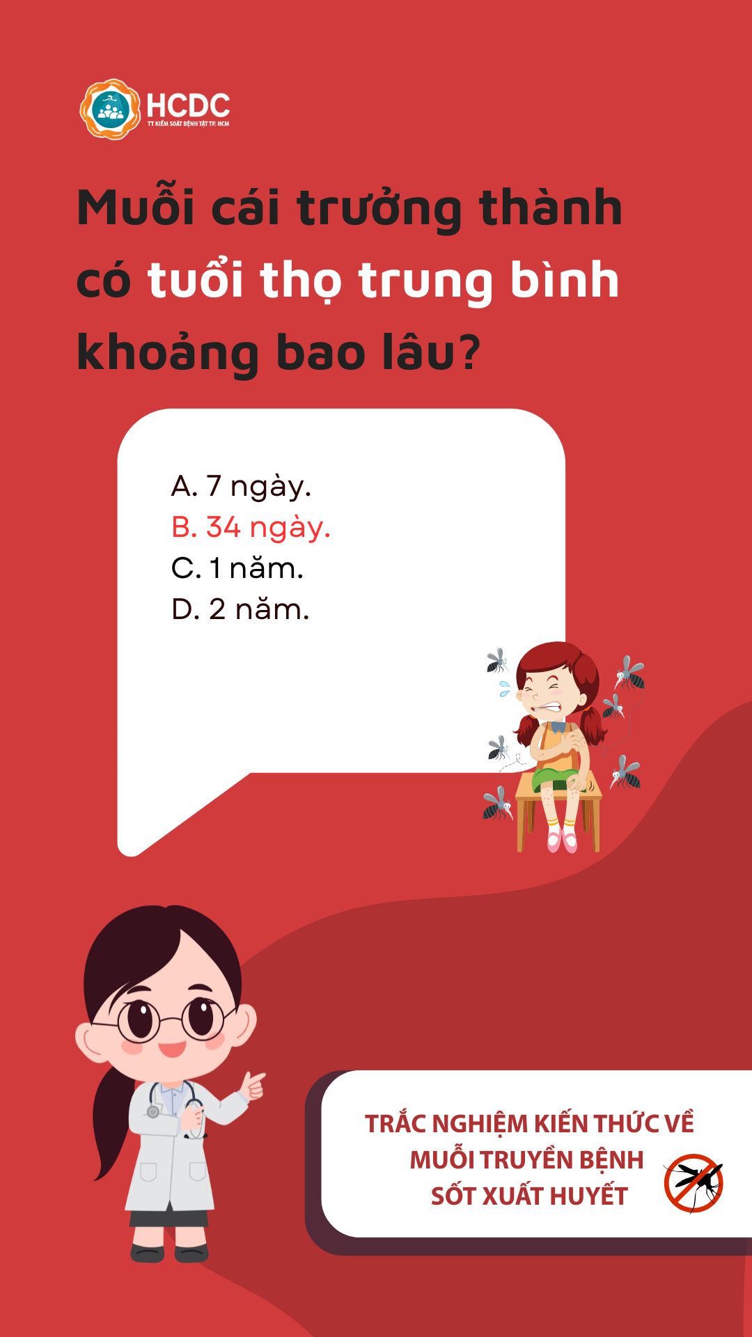Câu 2: Muỗi cái trưởng thành có tuổi thọ trung bình khoảng bao lâu?