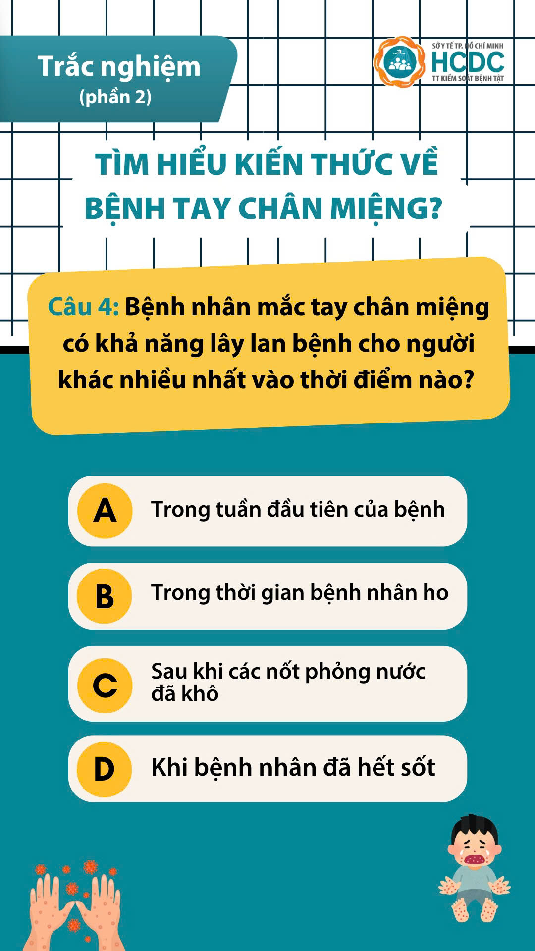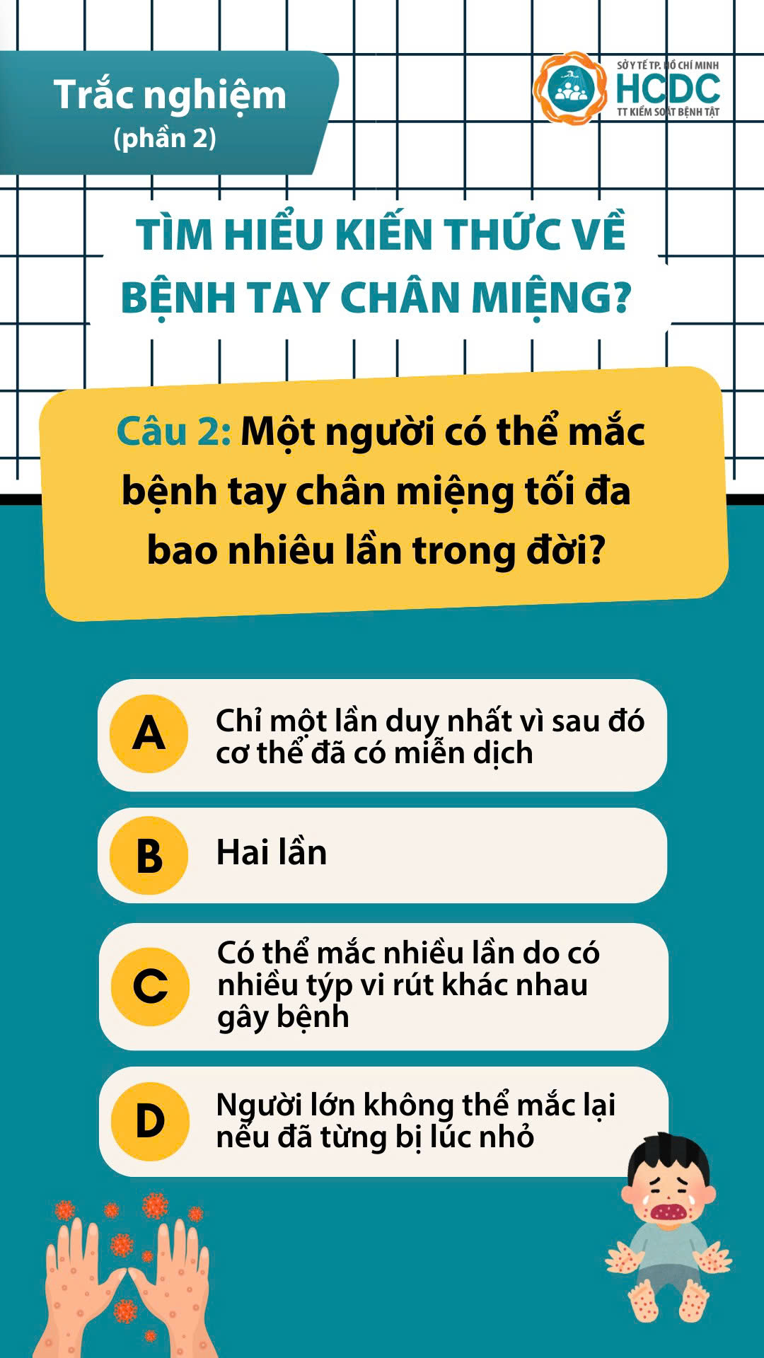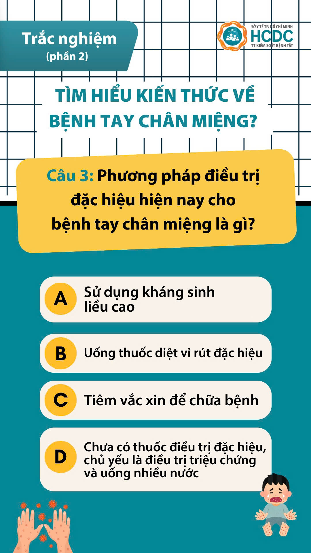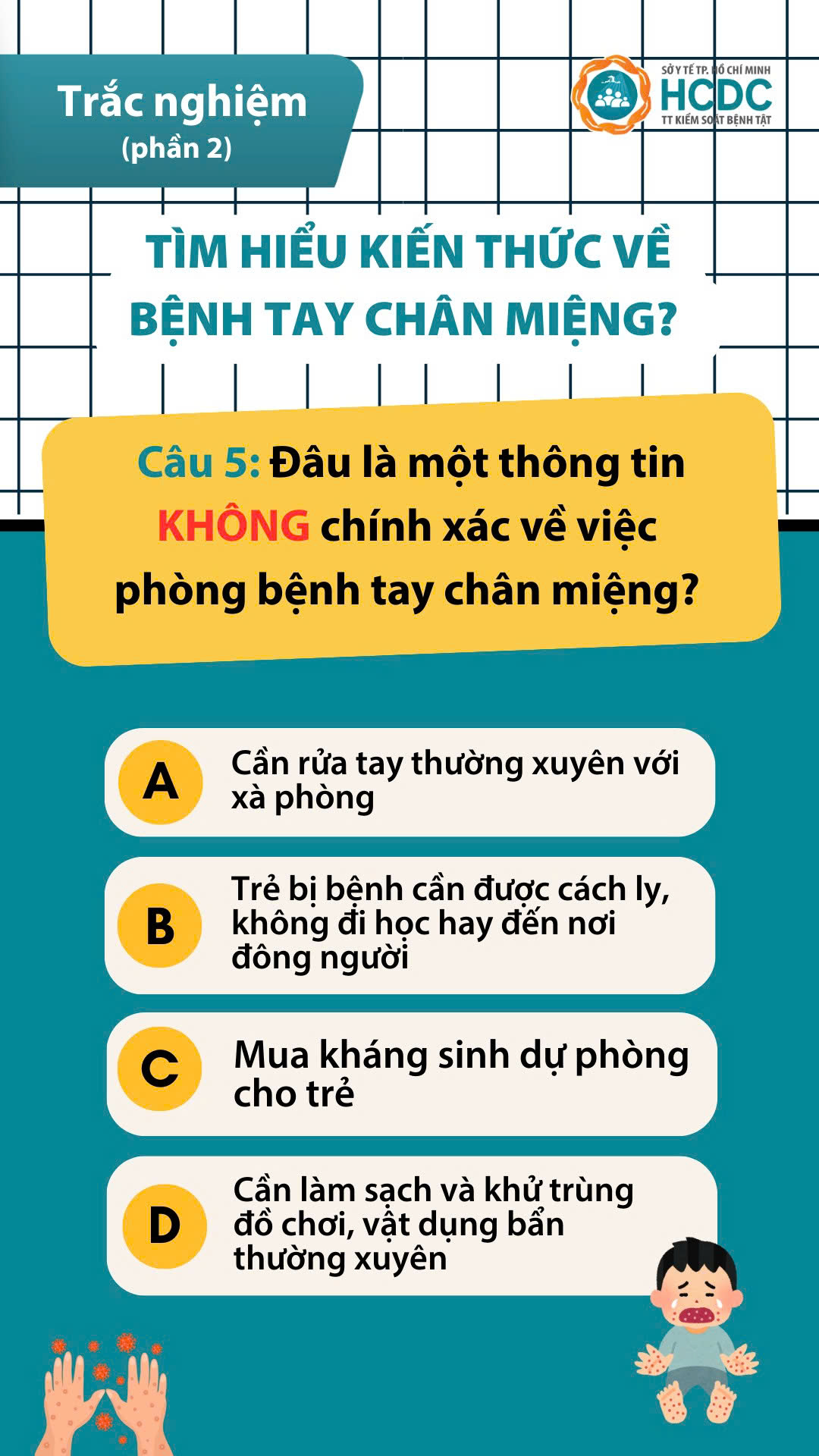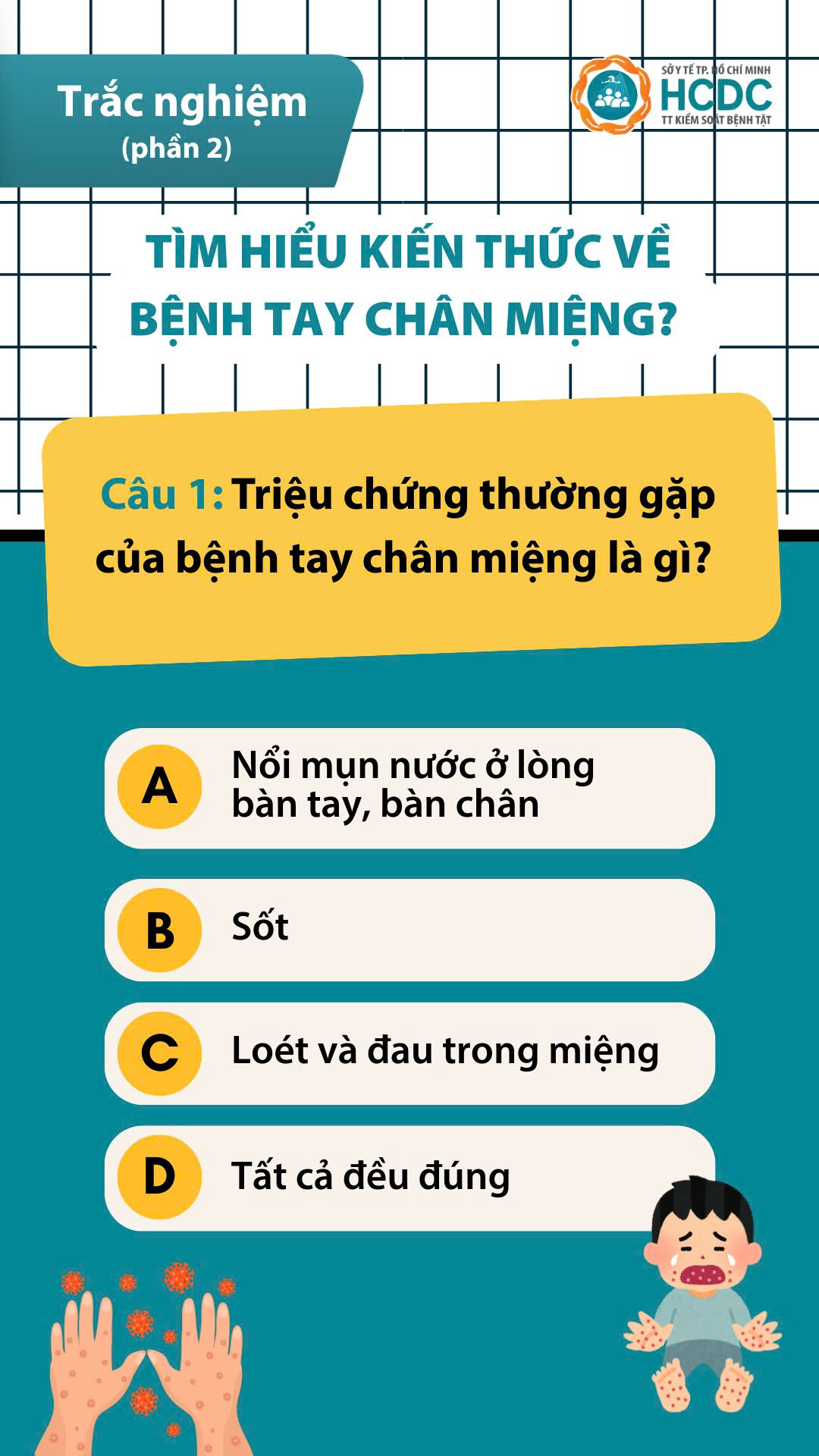Trắc nghiệm: Tìm hiểu kiến thức về bệnh tay chân miệng (phần 2)