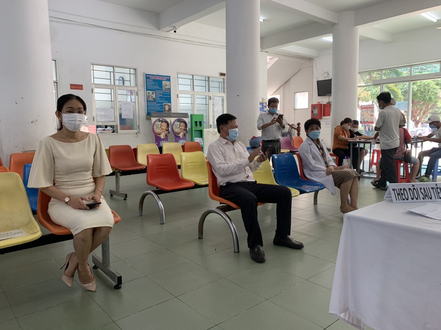 Sau khi được tiêm các nhân viên được cấp giấy xác nhận đã tiêm vắc xin Covid-19, theo dõi sau tiêm tại Trung tâm 30 phút và được hướng dẫn tiếp tục theo dõi ít nhất 7 ngày sau tiêm chủng về các dấu hiệu: toàn trạng, tinh thần, ăn, ngủ, thở, phát ban, triệu chứng tại chỗ tiêm. Các trường hợp phản ứng sau tiêm chủng sẽ được theo dõi và xử trí theo quy định.