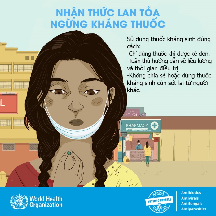 Kháng thuốc xảy ra khi vi khuẩn, vi rút, nấm và ký sinh trùng thay đổi theo thời gian và không còn phản ứng với thuốc. Điều này làm cho nhiễm trùng khó điều trị hơn và làm tăng nguy cơ bệnh tiến triển dẫn đến bệnh nặng và tử vong. Chủ đề của Tuần lễ truyền thông phòng, chống kháng thuốc năm 2021 (từ ngày 18/11 đến 24/11) là: “Nhận thức lan tỏa, Ngừng kháng thuốc”. Với khẩu hiệu bao trùm của Tuần lễ này tiếp tục là “Kháng sinh: Xử lý cẩn thận”. Các biện pháp để ngăn ngừa lây nhiễm bao gồm tiêm chủng, thực hành tình dục an toàn, vệ sinh tay tốt, thực hành an toàn thực phẩm, tăng cường cung cấp nước sạch và các phương tiện vệ sinh.