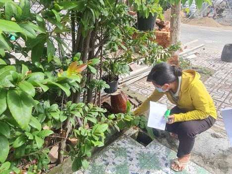 Nhân viên y tế khảo sát thực địa tại hộ gia đình nhằm đánh giá tình hình lăng quăng và tuyên truyền các biện pháp phòng bệnh sốt xuất huyết.