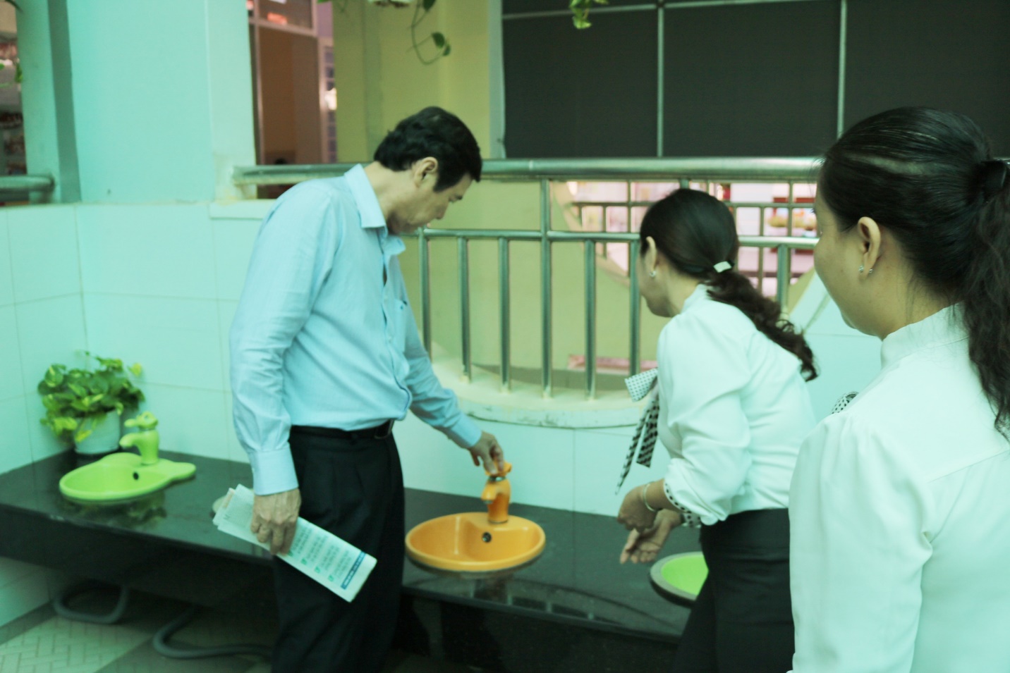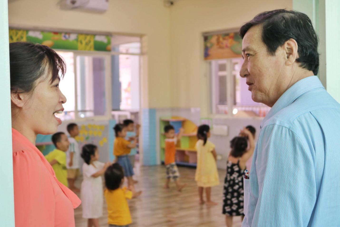 Ảnh: BS.CKII Nguyễn Hữu Hưng kiểm tra thực tế công tác phòng chống dịch bệnh tại một trường mầm non trên địa bàn quận 12.